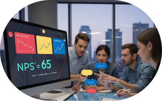 Nuestra solución a medida está concebida para aportarte valor, facilitarte todas las partes del proceso y acompañarte desde el asesoramiento inicial hasta la integración, puesta en marcha y mejora continua de nuestro software NPS®.