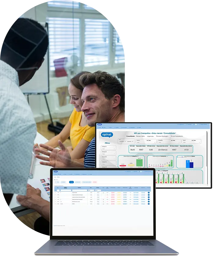 En entornos enterprise, Opinat ayuda a centralizar feedback de múltiples centros, unidades o equipos en cuadros de mando personalizados, con analítica asistida por IA para detectar riesgos, patrones y oportunidades antes de que escalen.