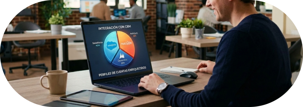 Conexión fluida con Salesforce, HubSpot, Dynamics y más para enriquecer el perfil de cada cuenta.
